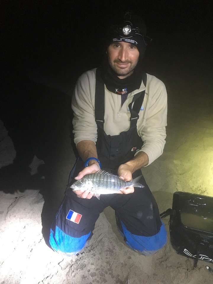 Le coup de sifflet est donné à la tombée de la nuit, moment de pêche stratégique puisque les poissons se montrent habituellement très actifs au crépuscule. La règle se confirmera avec énormément de prises dès les premiers coups de cannes : mulets, dorades royales, marbrés… Puis, avec la nuit, ce sont les poissons de surface qui prirent le relais avec les chinchards et bogues notamment. Paul s’en tire honorablement avec près de 4 kg de poissons et se classe 10e sur 300 de cette première manche, qui fut très poissonneuse avec plus de 300 kg de poissons en poids converti.