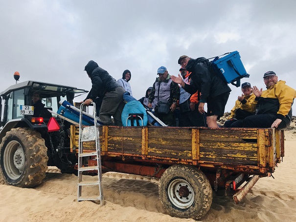 Le temps de récupérer les appâts au magasin partenaire de l’événement, qui n’ouvre qu’à 9h, il est déjà trop tard pour espérer pêcher dans les horaires du championnat. Néanmoins, l’envie de tremper les cannes est plus forte. Le vent est soutenu et plein travers, ce qui ne semble pas gêner les dauphins qui s’en donnent à cœur joie dans les bancs de mulets au large. Ils chassent en groupe, quel beau spectacle !