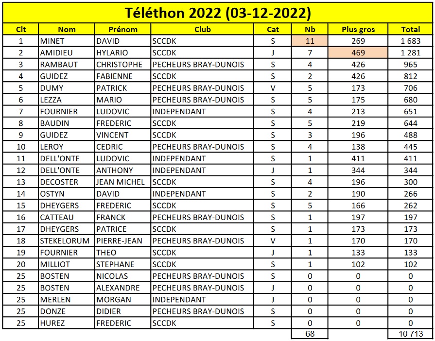 Sortie amicale en faveur du Téléthon sous forme de petit concours de pêche, plage de Malo-Terminus. Le SCCDK reversera un chèque à l’AFM Téléthon pour soutenir la recherche dans la lutte contre les maladies. De plus, chaque participant repartira avec un petit lot symbolique.
