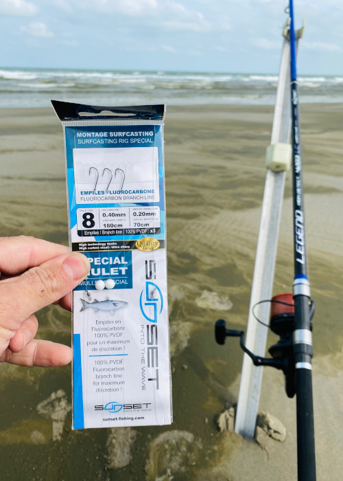 Enfin, pour les hameçons, même principe. Ils sont à adapter selon le poisson ciblé. Pour les poissons plats, ne pas monter au dessus de la taille 4 (le 6 étant idéal pour la sole qui a une petite bouche). A l’inverse, pour le bar, ne pas hésiter à équiper vos bas de ligne en hameçons taille 4 ou 2 pour vous éviter les juvéniles. Enfin, pour rechercher le mulet, on privilégiera la taille 8 car c’est un poisson méfiant. Notez que les références à longues tiges permettent une meilleure tenue des appâts. Le fait que ces hameçons longues tiges soient plus lourds que ceux à courtes tiges n’est pas un frein dans le Nord.