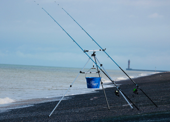 Le trépied est le passe partout, il en existe des modèles rétractables et facilement transportables dans un coffre de voiture. Il permet de s’adapter sur sol rocheux, bétonné ou sableux. Il permet de disposer 2 cannes et se retrouve très pratique à marée montante pour reculer les 2 cannes en un seul trajet (en desserrant les freins des moulinets, vous pouvez laisser les cannes dans leur godet). Sa principale limite reste par mer chargée en algues. Les cannes étant relativement basses dans leur support, le nylon traine davantage dans les vagues en bordure où se trouvent bien souvent l’essentiel des algues.