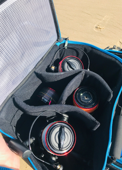 Elle offre un seul et unique grand volume, très pratique certes, mai dans lequel il convient de compartimenter son petit matériel (à l’aide de boites souples ou rigides selon vos envies). L’avantage premier de la caisse à pêche reste son imperméabilité sans faille à la pluie. De plus, elle nécessite vraiment peu d’entretien puisqu’elle ne comporte aucune fermeture à glissière qui risquerait de s’oxyder par le sel avec le temps. Elle se rince rapidement au jet d’eau et sèche en un temps record. Elle nécessite en revanche l’utilisation d’un harnais si on souhaite la porter sur le dos, ou d’un charriot si on souhaite la trainer. La caisse de pêche est vraiment idéale pour la pratique du surfcasting dans les Hauts-de-France et ses plages de sable fin. Les fins grains de sable se logeant en effet partout dans les matières textiles.