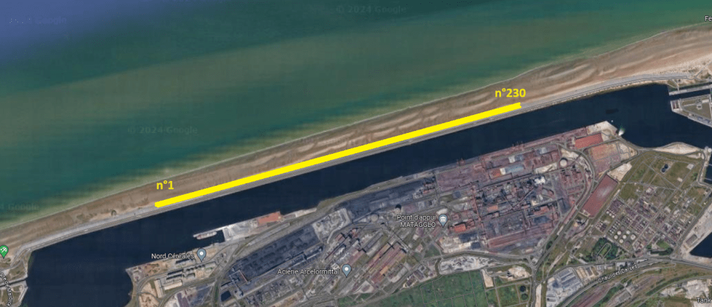 - Lieu : Digue du Braek, Dunkerque (pour GPS : Route de la digue du Braek, Dunkerque), du n°1 au n°240