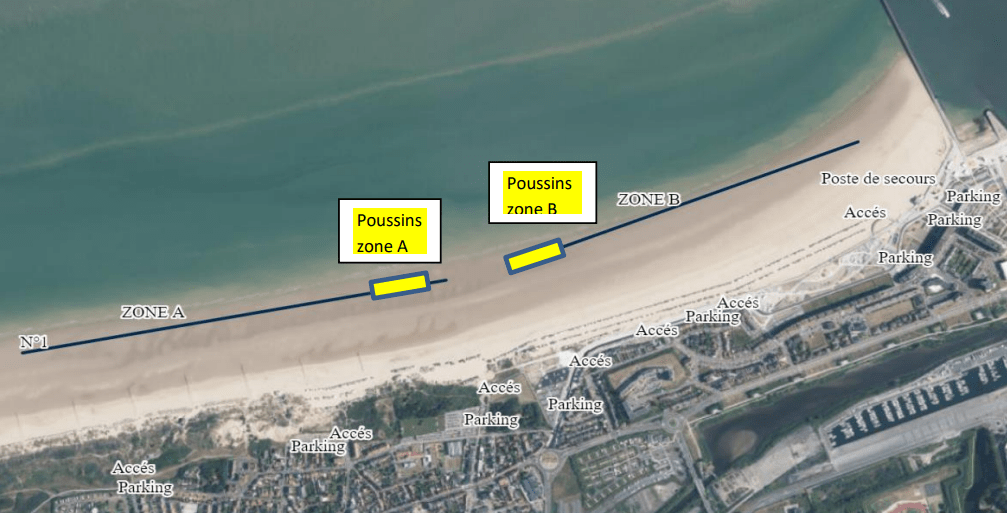 Les zones de pêche se situent sur la plage de Calais et Blériot Plage, de part et d’autres du grand parking.