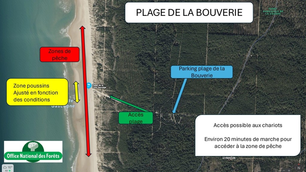 Les zones de pêche se situent sur la célèbre côte sauvage de la commune de la Tremblade.
