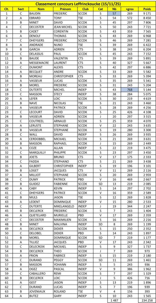 - Classement en 2 zones minimum, 3 zones dès 60 pêcheurs, etc par tranche de 20…